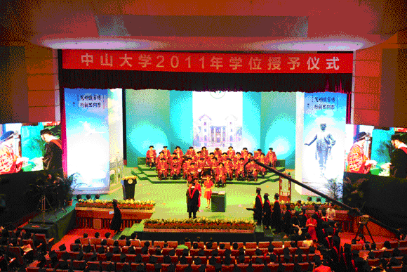 暖场音乐最后一次响起,权杖最后一次入场,国歌最后一次唱响,中山先生训词最后一次宣读,欢呼声最后一次响起,学位帽最后一次抛向高高的空中,“白云山高,珠江水长”的校歌最后一次在耳边回荡,毕业花墙最后一次映入镜头,留言墙上写下最后一个心愿……,所有的最后一次,都告诉我们,2011届毕业典礼暨学位授予仪式即将落下帷幕。